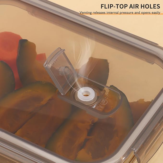 - Unique Lid: Our glass food prep containers with lids comes with a unique ventilated lid. When you open the ventilation holes, the lid is easier to close and seal better. It is also easier to open the lid with the vent open when serving steaming hot food