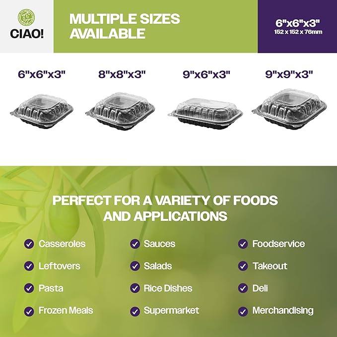 - CIAO! Polypropylene Black Bottom Clear Lid Hinged Containers are the perfect upscale choice for your takeout or food merchandising container for your supermarket. The clear lid provides great clarity to see the quality of your products.