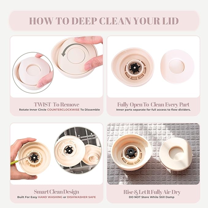 - EASY LID DEEP CLEANING TIPS: Our push-button lid is designed for everyday convenience and easy cleaning. Even the lid is dishwasher safe! For daily use, a quick rinse is usually sufficient. For a deeper clean, rotate the top counterclockwise to open the lid and scrub any hidden spots.