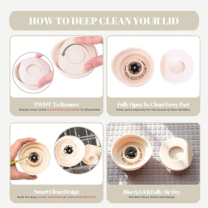 - EASY LID DEEP CLEANING TIPS: Our push-button lid is designed for everyday convenience and easy cleaning. Even the lid is dishwasher safe! For daily use, a quick rinse is usually sufficient. For a deeper clean, rotate the top counterclockwise to open the lid and scrub any hidden spots.