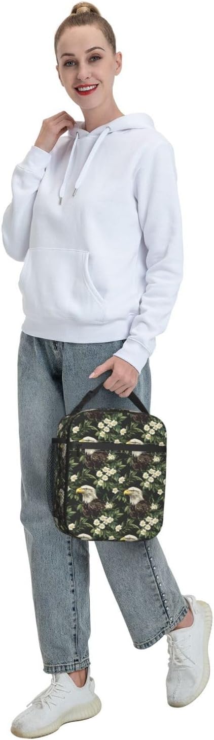 Bald Eagle Lunch Box for Teen Kids, Vintage Reusable Thermal Lunchbag, Picnic, School, Hiking, Fishing, Work, Bird Insulated Tote Cooler Bags for Adults Women Decor Gifts, Nature Theme