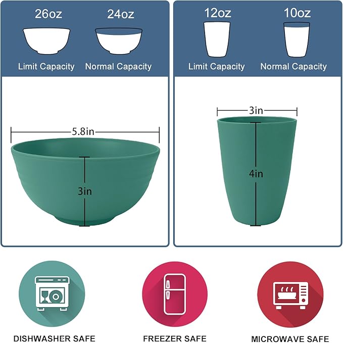 - ā¦ćš£š®š°šøš®š“š² šš»šš¶š±š²ć - Wrova 40pack wheat straw dinnerware sets contains 8pcs 10inches wheat straw plates, 8pcs 9inches wheat straw plates, 8pcs 6inches wheat straw plates, 8pcs 26oz wheat straw bowls,8pcs 12oz wheat straw cups. All of them are unbreakable,bpa and lead free,lightweight and easy to clean.