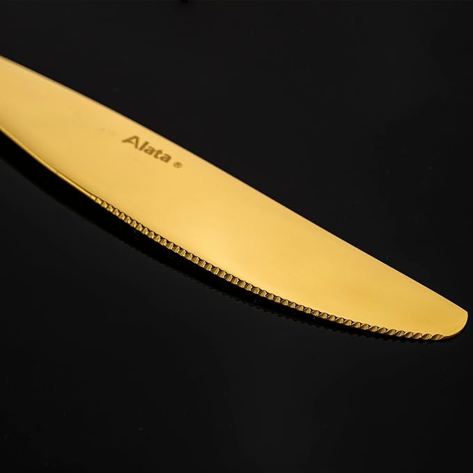 Alata Cube Gold 20-Piece Flatware Set, Forged Cutlery Set, Mirror Finish Silverware Service for 4, Stainless Steel Tableware with Square Handle for Home/Restaurant, Dishwasher Safe