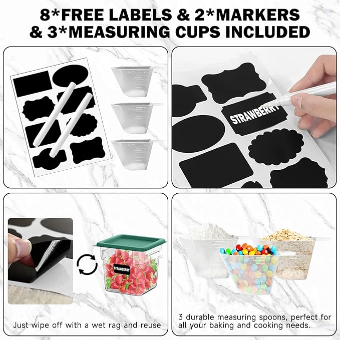 - 【INTIMATE ACCESSORY SET】: The stickers and markers included in the set can help you categorize your storage more effectively, while the measuring spoons make it easier to retrieve items from the food storage containers with lids.