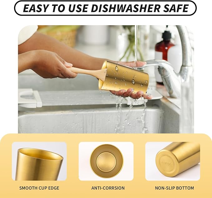 - 【Preferred Material】 This metal cup is made of 304 food-grade stainless steel, which resists rust and is easy to clean. It won't break and can be washed by hand or in a dishwasher.