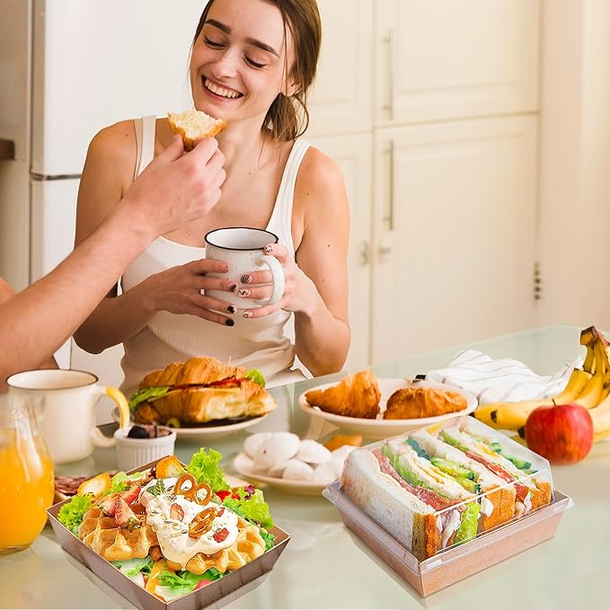 - Simply Clear Beautiful Design: YTAXZ charcuterie boxes are designed with a clear, secure plastic box lid, allows you to see the delicious food inside clearly and also prevents food from deformation, convenient for packing and carrying, charcuterie boxes feature a grease-proof coating that prevents any oils or sauces from leaking through the cardboard bottom, snap type design, which is not easy to fall off, and there is no need to worry about food falling down from the box accidentally