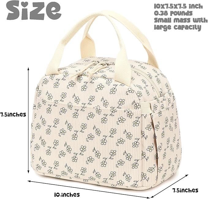 - Spacious and Lightweight✿Lunch bag women measures L10.6 x W 6.3 x H 8.6inches, 0.38 pounds,Lunch tote bag for girls is spacious enough to fit your lunch box. Insulated Cooler with perfect standard size can keep your food cool or warm. Allow your food to be fresh and delicious.
