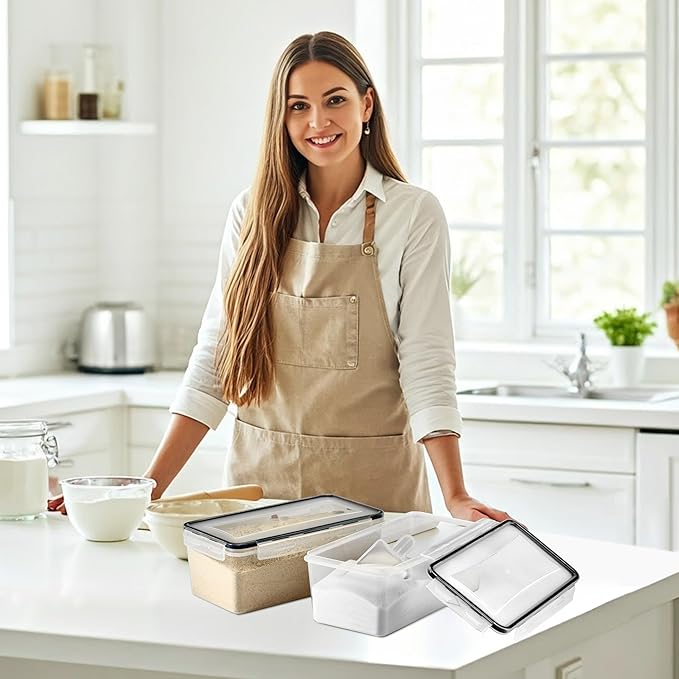 - Keeps Food Fresh: Snap lids with an airtight seal preserve the freshness of your food. Kitchen storage containers are designed to measure, dispense, and organize essential dry foods.