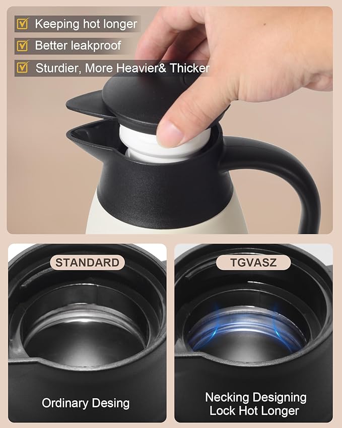 70 Oz Stainless Steel Coffee Carafe, Keeps Hot Beverages for 12 Hours, Double Walled Vacuum Insulated Carafe (White)
