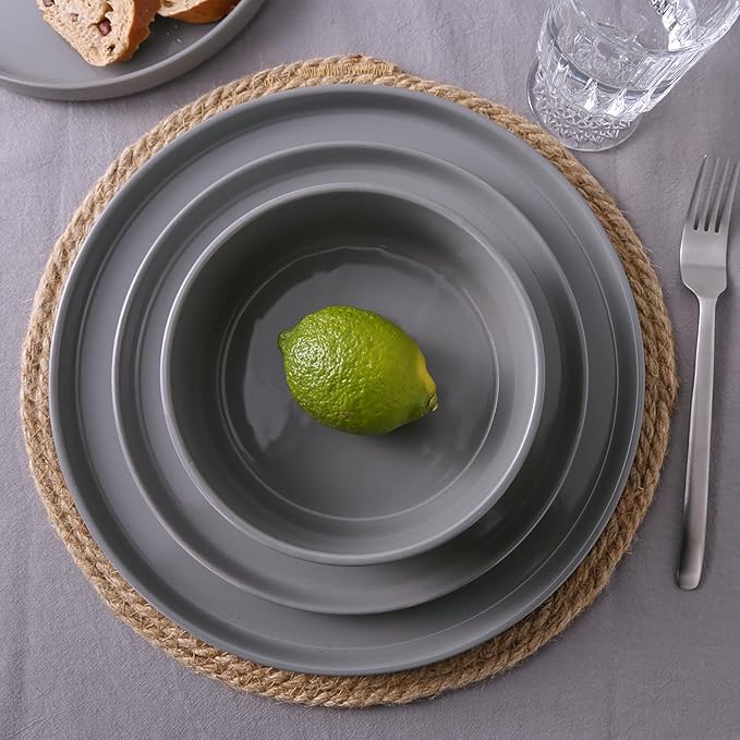 Famiware Nebula Dinnerware Set with Pasta Bowls, Service for 4 (16pcs), Fine Stoneware Plates and Bowls Sets, Microwave and Dishwasher Safe Dishes Set, Dark Gray
