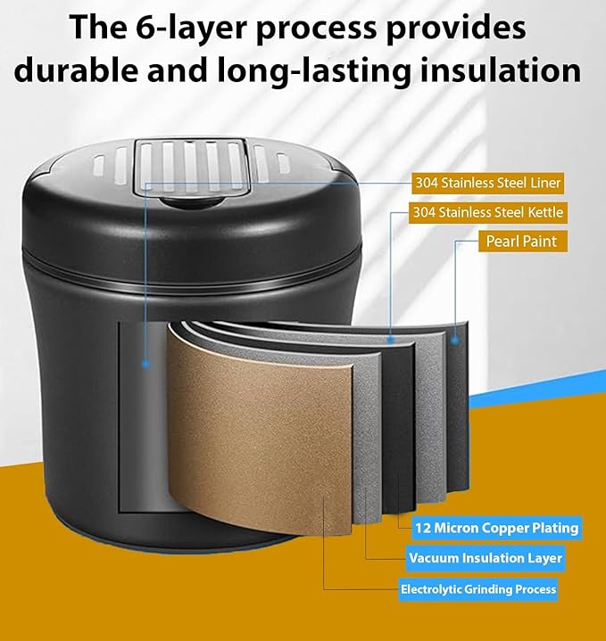 - 360° LEAKPROOF DESIGN: This vacuum jar boasts an advanced press-seal system. Just press the carrying handle horizontally, and the jar seals automatically. The built-in sealing tape ensures no leaks, keeping your cooked food warm, secure and mess-free