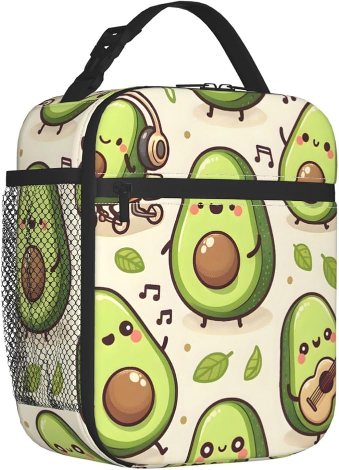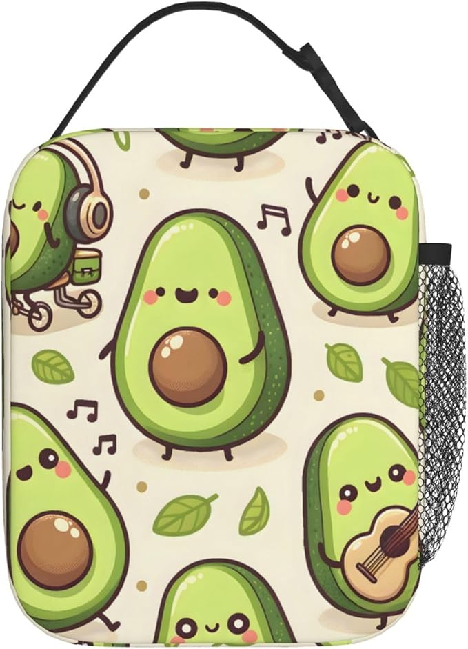 Reusable Avocado Lunch Box for Kids, Insulated Cute Cartoon Fruit Bag,Polyester Cooler Food Lovers Handbags Case for School Picnic Work Travel Beach or Hiking, Gifts