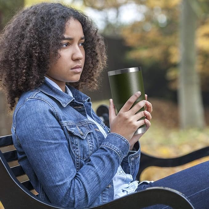 - Stainless Steel Tumbler - 304 stainless steel travel tumbler. Elector polished inside. Colored powder coated finish on the outside. Ensure your portable coffee mug unbreakable, rust resistant, sweat free, Non-toxic and harmless.