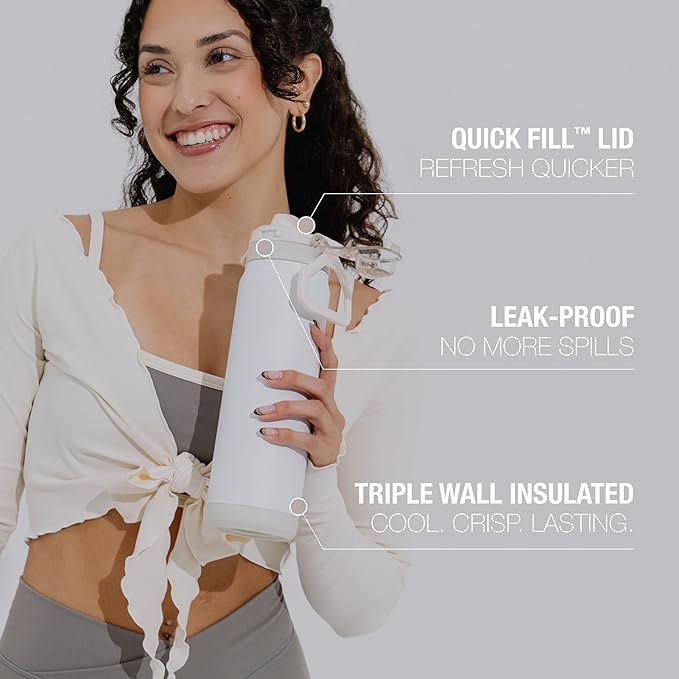 ZULU Powerfill Pro 24oz Stainless Steel Water Bottle with Quick Fill Lid, Triple Walled Vacuum Insulated Metal, Leak Proof Locking Lid, Sip and Chug, Reusable BPA Free, White