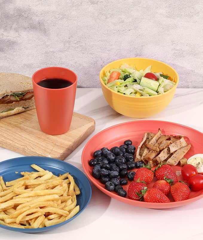 - Durable and Kid-Friendly: Nearly unbreakable, shatterproof plastic dinnerware set with raised edges, resistant to chipping, scratches, and wear-related damage. Ideal for camping, RVs, beach houses, and safe for toddlers and children