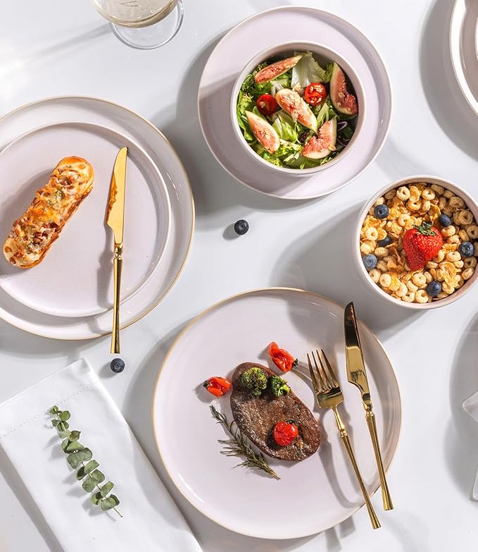 - SAFE TO USE AND DURABLE: Unlike many ceramic products, our dinnerware is made with completely lead-free and cadmium-free glazes. Each piece is fired at a high temperature of 2340℉ for 13 hours, making the set durable and heat-resistant. It is safe for use in the oven, microwave, and other kitchen appliances.