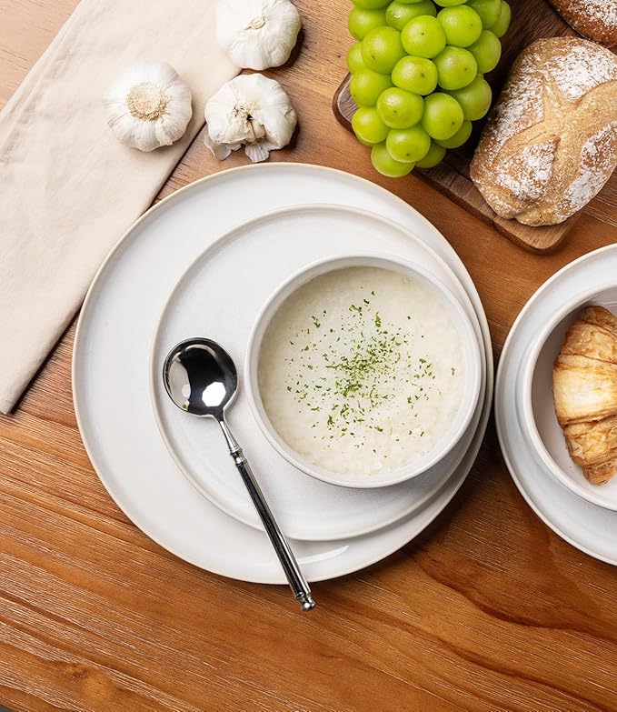 - SAFE TO USE AND DURABLE: Unlike many ceramic products, our dinnerware is made with completely lead-free and cadmium-free glazes. Each piece is fired at a high temperature of 2340℉ for 13 hours, making the set durable and heat-resistant. It is safe for use in the oven, microwave, and other kitchen appliances.