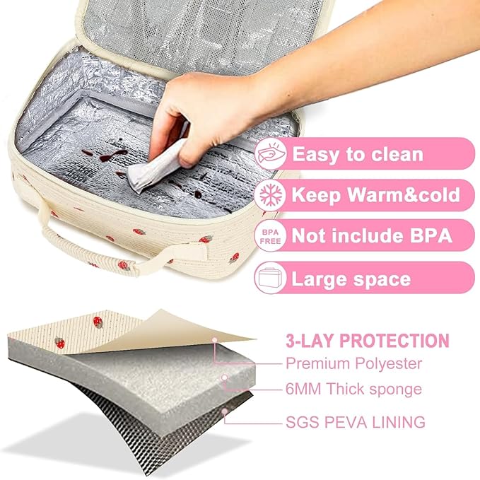 - ★ Kids lunch bag Size: 8.7"*6.3"*7.5" (22cm* 16cm*19cm), spacious to fit two 750ml lunch containers, drinks and fruits. Insulated inside to keep your food fresh for few hours with ice packs.