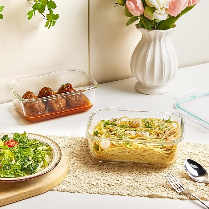 - 【Premium Glass & BPA Free】The glass containers are made of high quality borosilicate glass, making it safe for food storage. It is suitable for storing fruits, vegetables, salads, cereals, meals, meat, pasta, soups. It is a good choice for preparing meals at home, easy to get a healthy life.