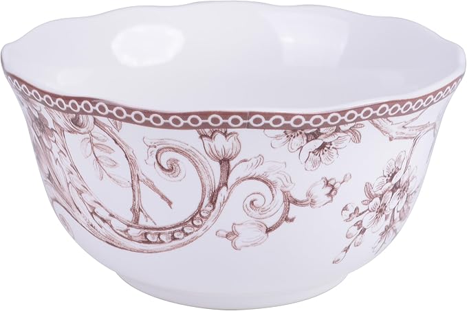 - Adelaide Brown on White Design: Showcasing delicate brown botanical patterns and ornate edges, each piece brings timeless elegance to your table setting.