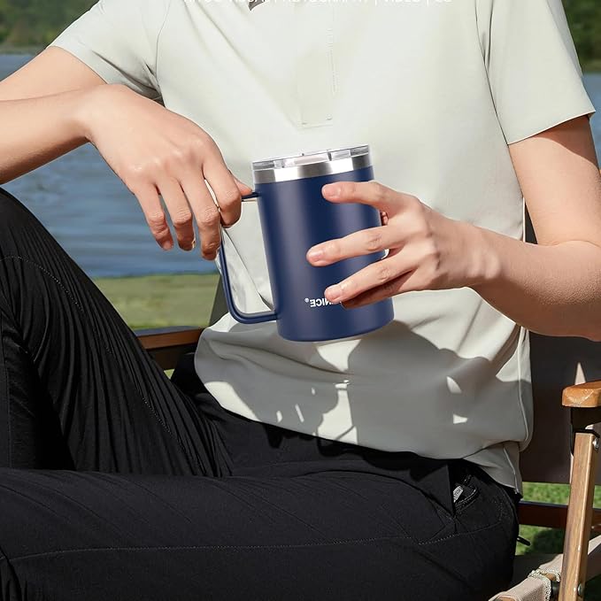 14 oz Stainless Steel Vacuum Insulated Tumbler with handle & MacSlider Lid, Dishwasher Safe & Spill Proof Coffee Cup, Travel Mug for Hot/Cold Drinks, Durable Design - Gray