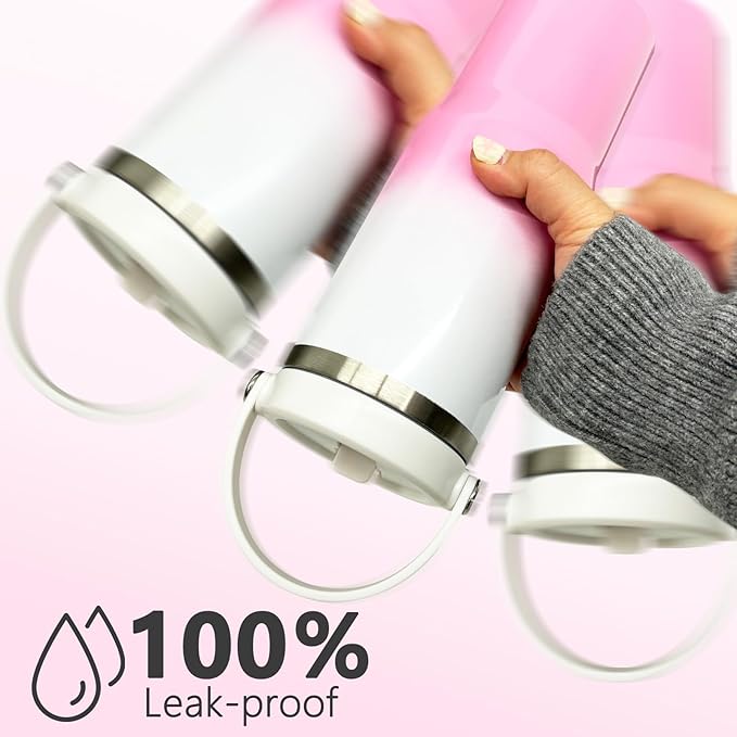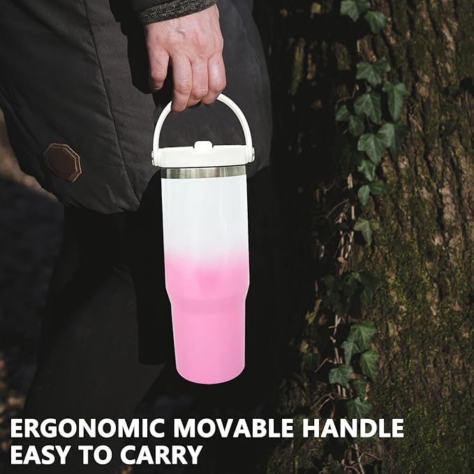 30 oz Tumbler with Handle and Straw, Vacuum Insulated Tumblers with Flip Straw and Top Handle, Leakproof Tumbler, Stainless Steel Travel Mug for Coffee Water, Cold for 20 Hours(Pink White Gradient)