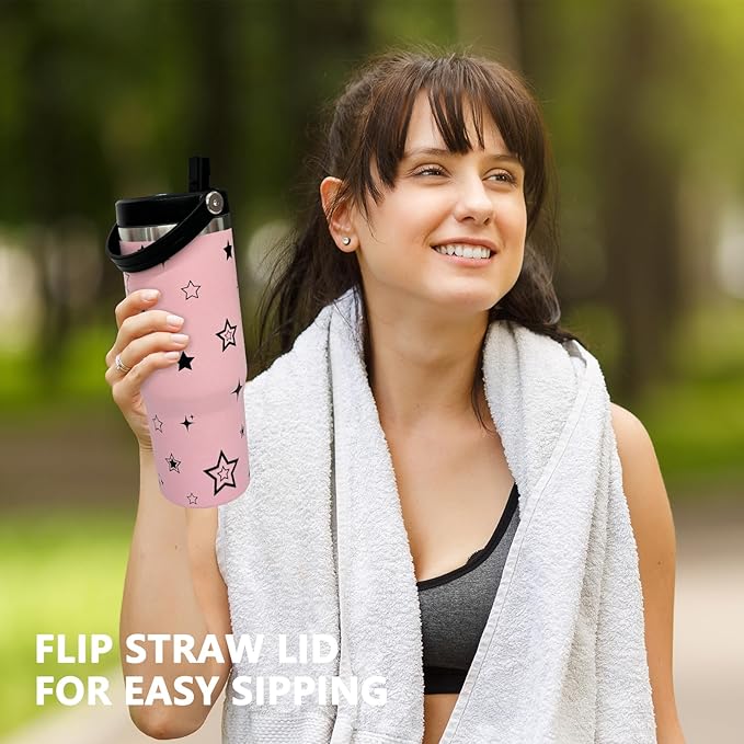30 oz Tumbler with Handle and Straw, Vacuum Insulated Tumblers with Flip Straw and Top Handle, Leakproof Tumbler, Stainless Steel Travel Mug for Coffee Water, Cold for 20 Hours(Pink Star)