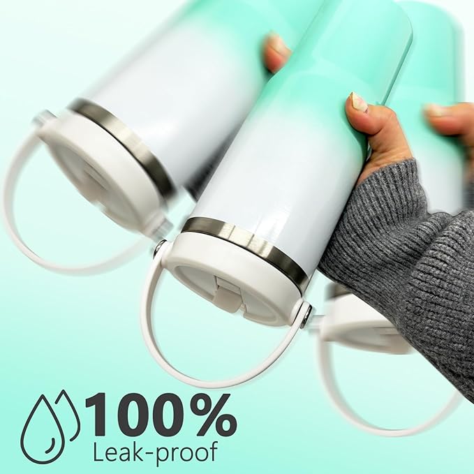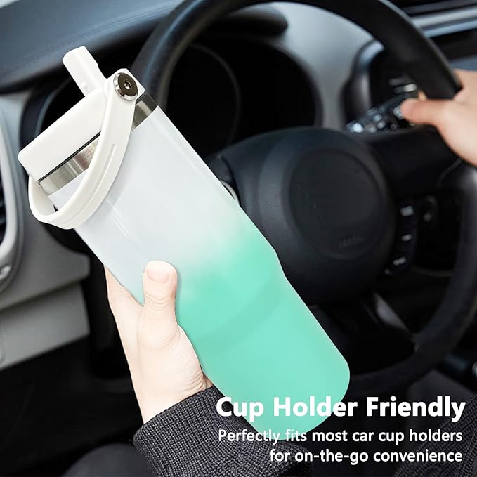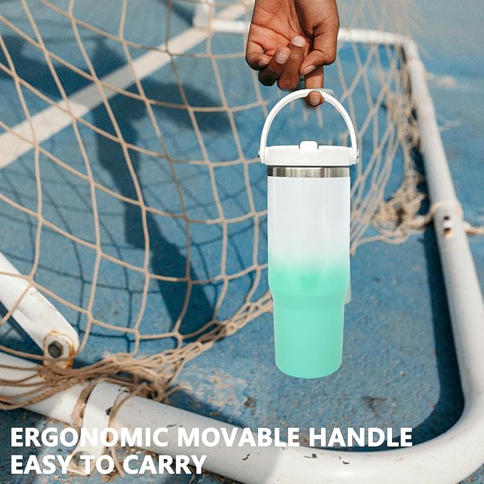 30 oz Tumbler with Handle and Straw, Vacuum Insulated Tumblers with Flip Straw and Top Handle, Leakproof Tumbler, Stainless Steel Travel Mug for Coffee Water, Cold for 20 Hours(Green White Gradient)