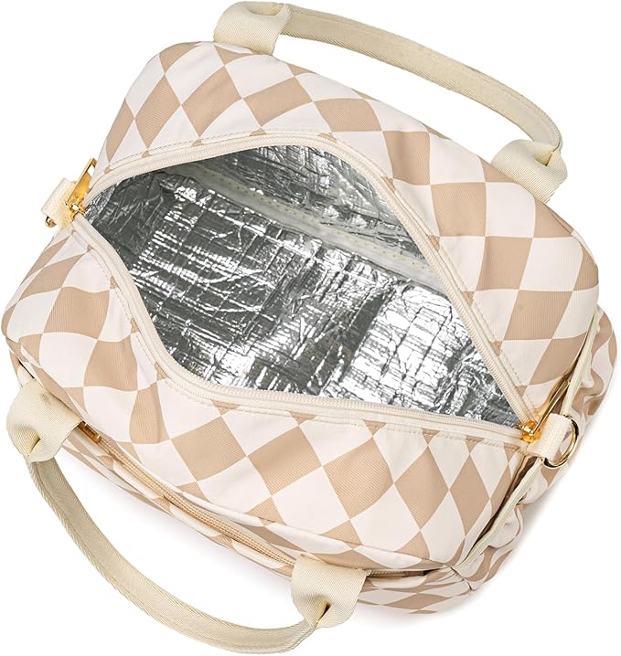 CAMTOP Lunch Box for Women Insulated Lunch Bag Lunchbox Cooler Thermal Leakproof Quilted Reusable Lunch Tote Bag for Work School Travel Picnic (Brown-White Check)