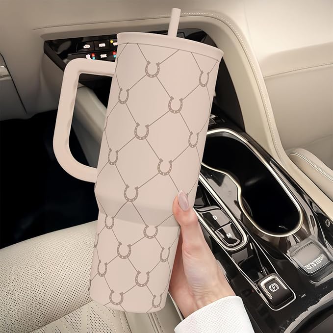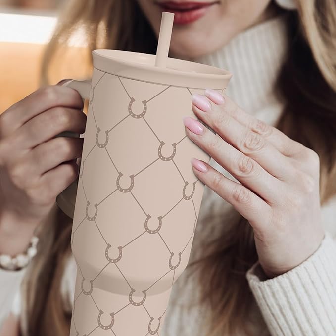 Horse Tumbler with Handle, Insulated Cup Stainless Steel Travel Mug Cup, Gifts for Women Girl, Equestrian Gift for Birthday Christmas, 40oz