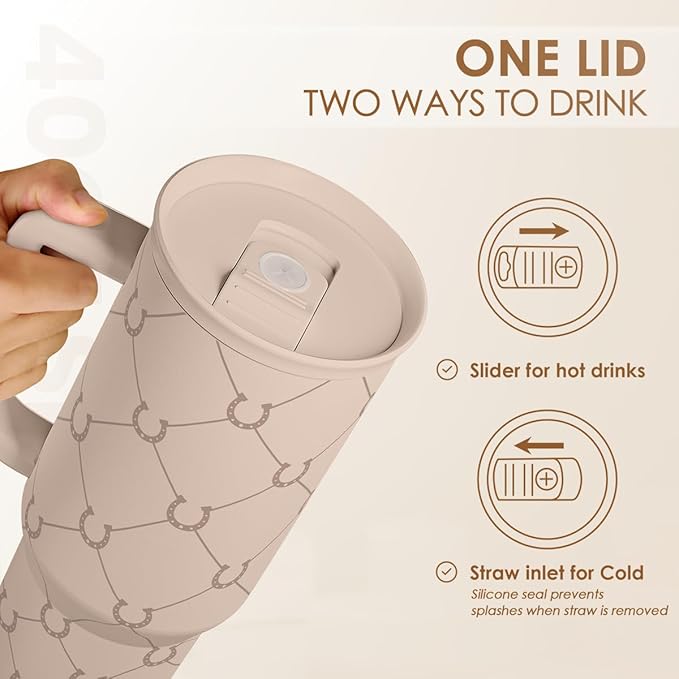 - Hydration in style: our 40 ounce slider tumbler with handle is big enough to conquer your thirst while adding a stylish touch to your daily routine; plus the practicality of the tumbler makes excellent gift option for cherished ones