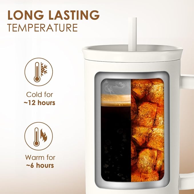 - Savor every sip: Our double-walled stainless steel tumbler locks in flavor and temperature, keeping your drinks refreshingly cold or delightfully hot. With a generous 40-ounce capacity, enjoy extended taste without constant refill