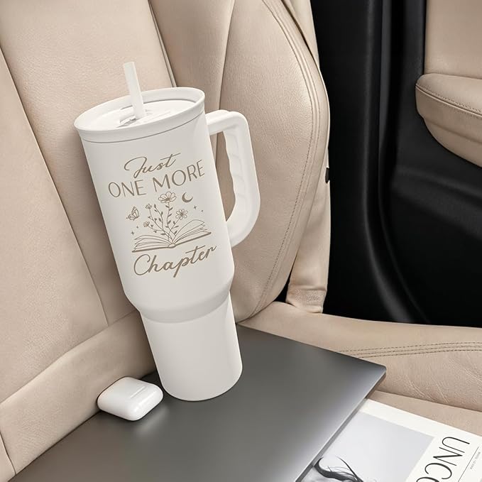 Book Lover Gifts for Women, Just One More Chapter Tumbler with Handle, Stainless Steel Insulated Coffee Travel Mug Cup, Gifts for Women Girls Bookworm on Christmas Birthday, 40oz