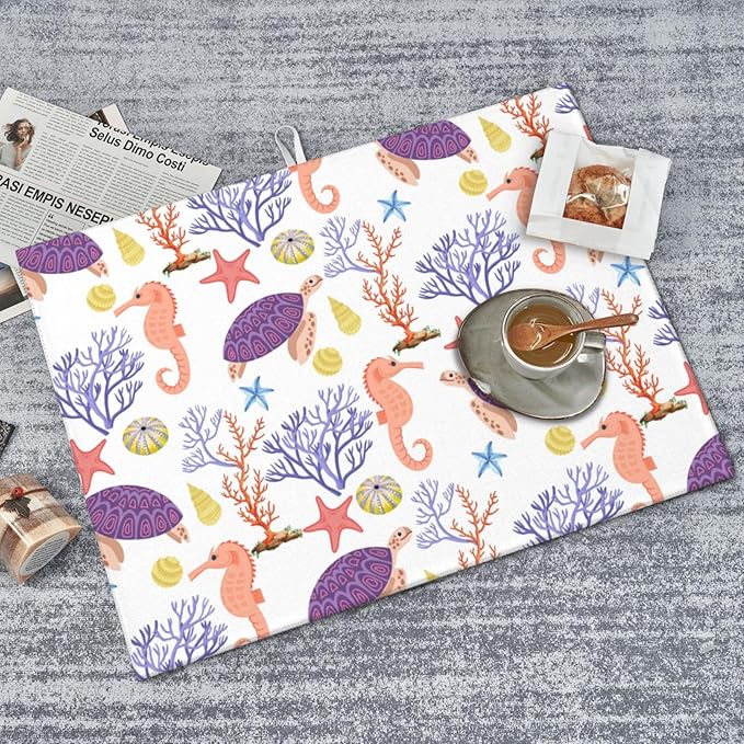 Purple Beach Sea Turtle Dish Drying Mat 18x24 For Kitchen Counter Absorbent Microfiber Dishes Pad Dish Drainer Rack Mats Fast Dry Kitchen Accessories