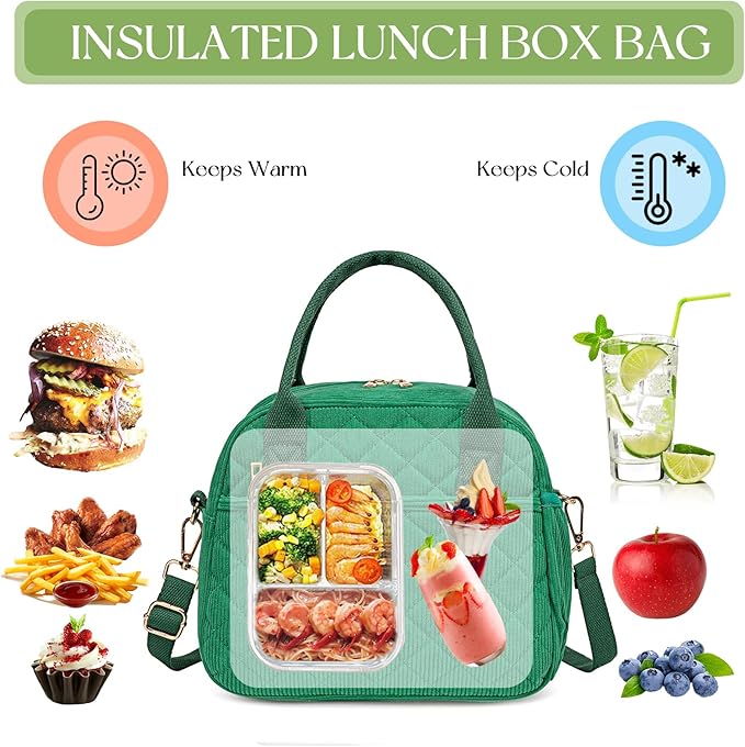 - 【FASHION ITEMS】The front of this lunchbox is designed with quilted. Simple and elegant design is a great item to pair with different clothes every day. It can blends in with your attire and isn’t too flashy or tacky. This bag looks good with purse and briefcase.