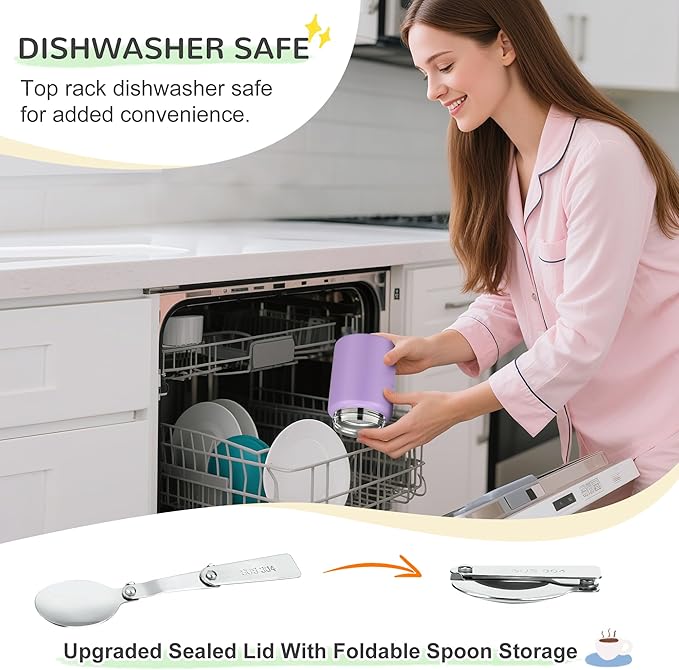 - FOOD-GRADE SAFETY & CPC CERTIFIED - The inside of kids thermo food container is made of high quality 316 stainless steel. Fully compliant with CPC standards to ensure child safe material. Double-layer vacuum insulation design, open lid venting for safe steam release. Durable, care for children's health.