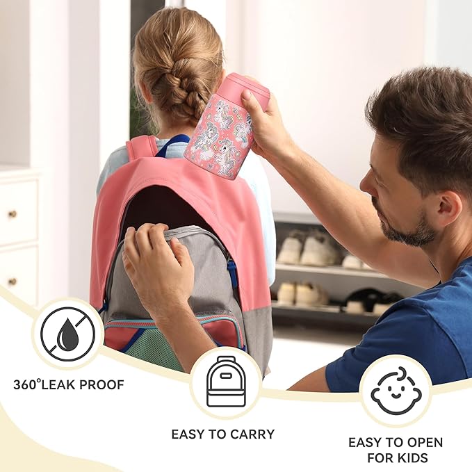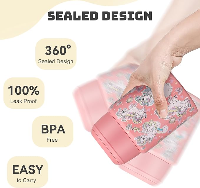 - FOOD-GRADE SAFETY & CPC CERTIFIED - The inside of kids thermo food container is made of high quality 316 stainless steel. Fully compliant with CPC standards to ensure child safe material. Double-layer vacuum insulation design, open lid venting for safe steam release. Durable, care for children's health.