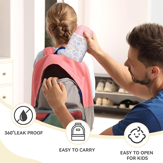 - FOOD-GRADE SAFETY & CPC CERTIFIED - The inside of kids thermo food container is made of high quality 316 stainless steel. Fully compliant with CPC standards to ensure child safe material. Double-layer vacuum insulation design, open lid venting for safe steam release. Durable, care for children's health.