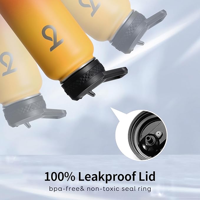 - Leakproof Triple Lids: Each lid comes with a rubber seal ring to ensure 100% leakproof. Sip through the flip-up straw lid, drink like a fish through the spout lid, or refill ice cubes through the wide mouth, you are in good hands with Trebo 40 oz water bottle.