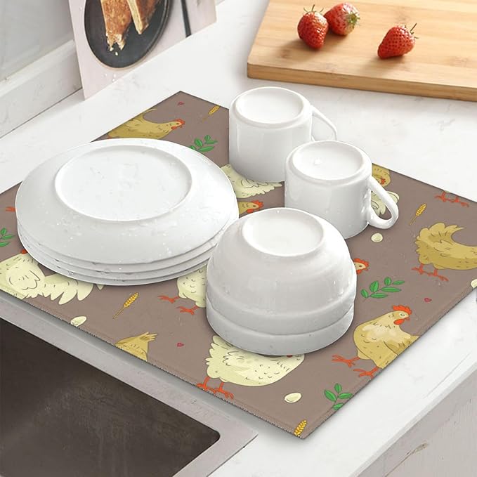 Chicken Legs Chickens Leg Animal Rooster Easter Drying Mat 16x18 Inch For Kitchen Counter Drying Mats Dish For Kitchen Counter Easy Clean Kitchen