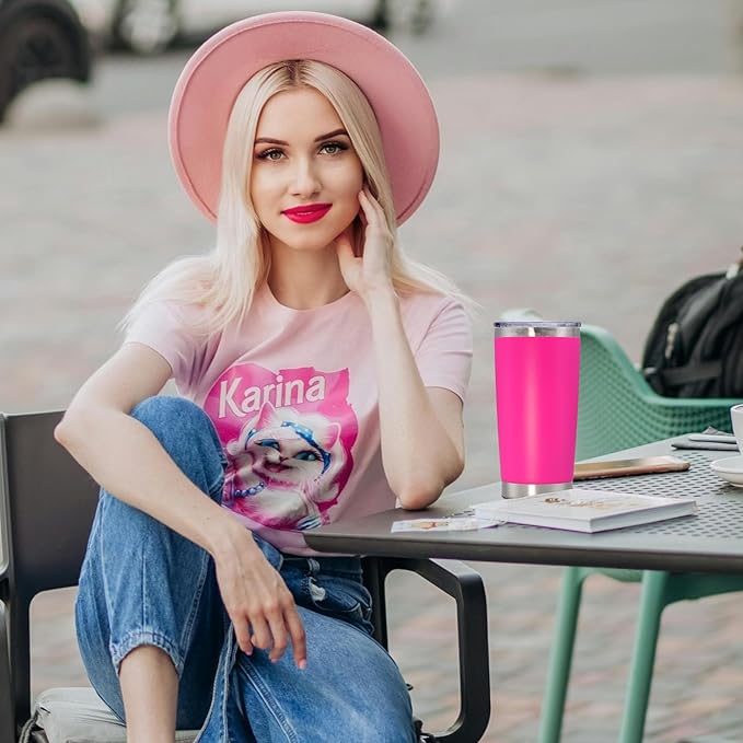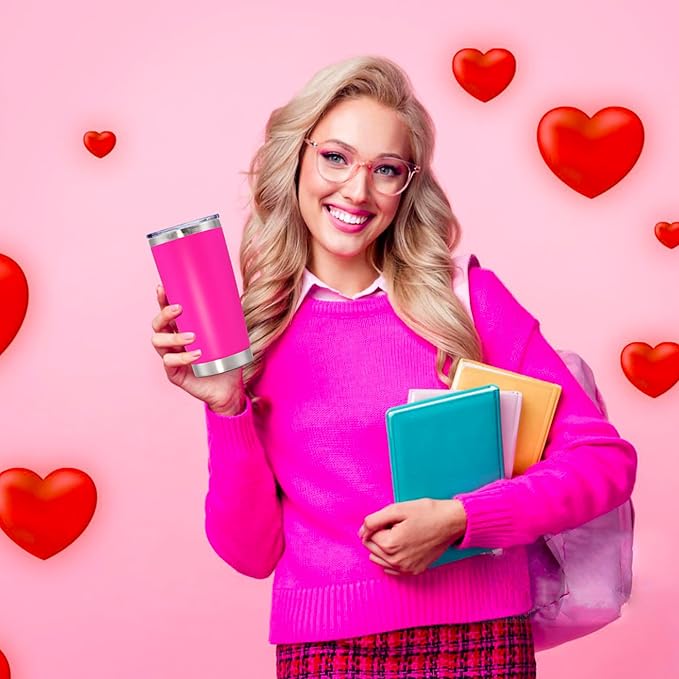 20 oz Tumbler with lid Double Wall Vacuum Insulated Tumblers Stainless Steel Coffee Mug Travel Coffee Tumbler Powder Coated Tumbler Cup Keep Hot&Cold - (Hot Pink 6 Pack)