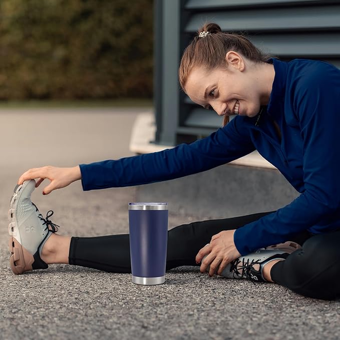 20 oz Tumbler with lid Double Wall Vacuum Insulated Tumblers Stainless Steel Coffee Mug Travel Coffee Tumbler Powder Coated Tumbler Cup Keep Hot&Cold - (Navy 1 Pack)