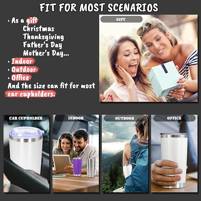 - SIZE & FITS CAR CUPHOLDER - The capacity of the tumbler is 20 oz and the smooth design of the tumbler body makes it suitable for most car cupholders. In addition, the tumbler can also be easily held