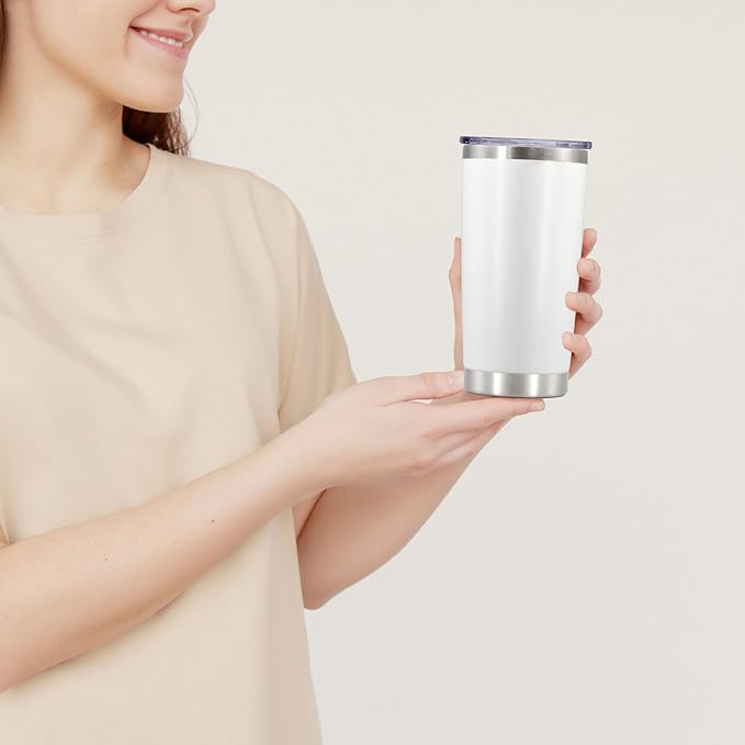 20 oz Tumbler with lid Double Wall Vacuum Insulated Tumblers Stainless Steel Coffee Mug Travel Coffee Tumbler Powder Coated Tumbler Cup Keep Hot&Cold - (White 1 Pack)