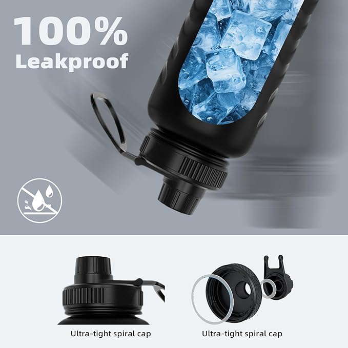 - LEAK-PROOF & ERGONOMIC DESIGN: Premium silicone ring is prevents leaks even when tilted. Our sweat-proof water bottles deep-textured grip ensures secure one-handed use during workouts or runs. A nice gym water bottles for men.