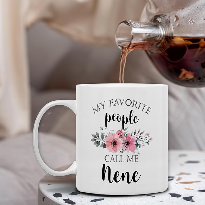 QASHWEY Nene Coffee Mug, Nene Gifts for Grandma, NeneGifts from Grandkids, Grandma Coffee Mug, Mothers Day Mug Tea Cup Gifts for Nene, My Favorite People Call Me NeneCoffee Cups Ceramic 11oz