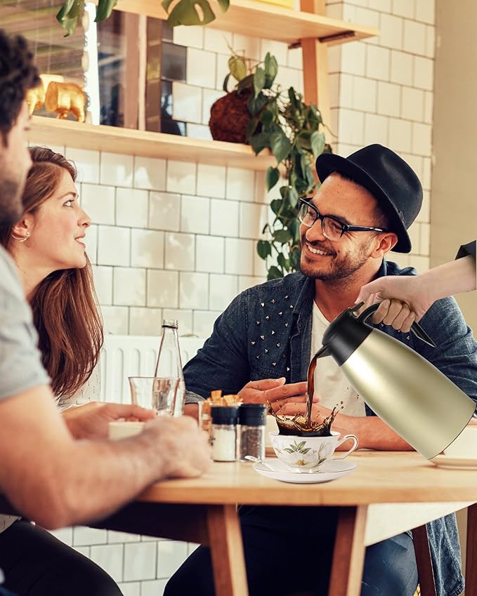 Updated 70 Oz Thermal Coffee Carafe, 2.1L nsulated Stainless Steel Coffee Carafes for Keeping Hot Coffee & Tea Hot Beverage-12Hours, Double Walled Vacuum Coffee Carafe (Gold)