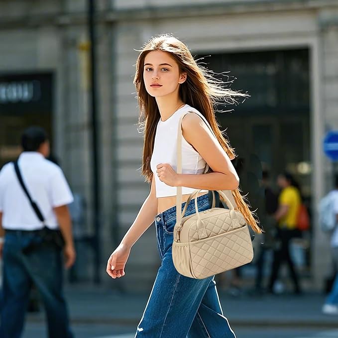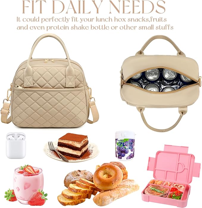 - 【FASHION ITEMS】The front of this lunchbox is designed with quilted. Simple and elegant design is a great item to pair with different clothes every day. It can blends in with your attire and isn’t too flashy or tacky. This bag looks good with purse and briefcase.
