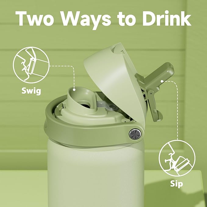 - 2-in-1 Lid, Sip or Swig: Features a flip straw for easy sipping and a push-button spout for quick swigging; stay hydrated your way — at the gym, on the go, and beyond