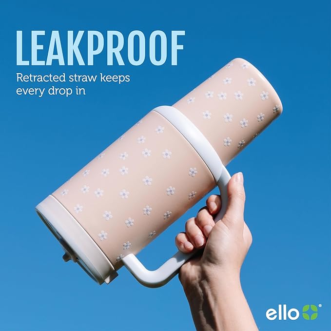 Ello Oasis 30 oz Tumbler with Handle & Retracting Straw | Reusable Insulated Stainless Steel Cup 100% Leakproof, Gifts for Teens Women Men | Keeps cold for 24 Hours, Cup Holder Friendly, Cream Tonal